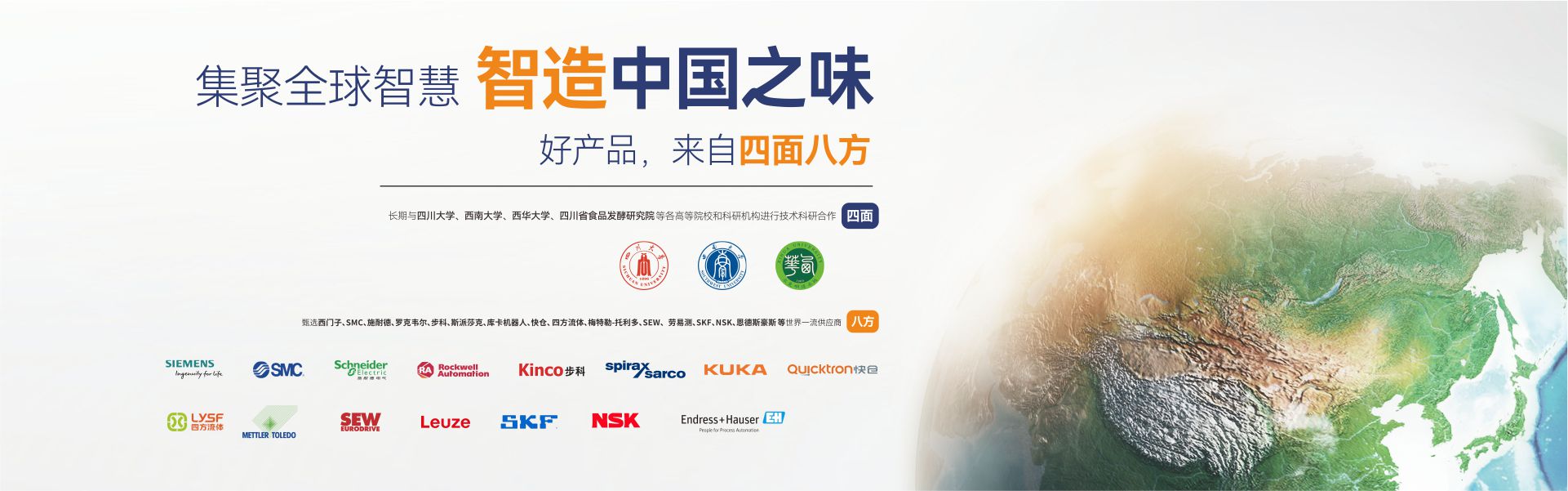 成都??茩C械設備制造有限公司(簡稱:成都海科)是一家集研發、生產、銷售、服務為一體,專注為中國傳統食品行業提供自動化、智能化、數字化、智慧工廠整體解決方案的國家級高新技術企業。公司擁有標準化辦公樓及現代化生產車間約42000m2,具有較強的綜合研制、設計開發、生產能力,具備嚴格的質量管理體系和完善的售后服務體系。公司業務范圍覆蓋:復合調味品智能生產線、中式醬鹵肉制品智能生產線、醬腌菜智能生產線、智慧餐廚、央廚預制菜調理智能生產線,與海底撈、天味、九毛九、聚慧、楊國福、絕味、雙匯、新希望、無窮、烏江、吉香居、仲景、李記樂寶、Tyson、益海嘉里、開小灶、老鄉雞等眾多知名企業合作。截止目前,成都??埔呀浿Τ?000+企業順利投產5000余條生產線,為客戶創造年產值超1000億元!